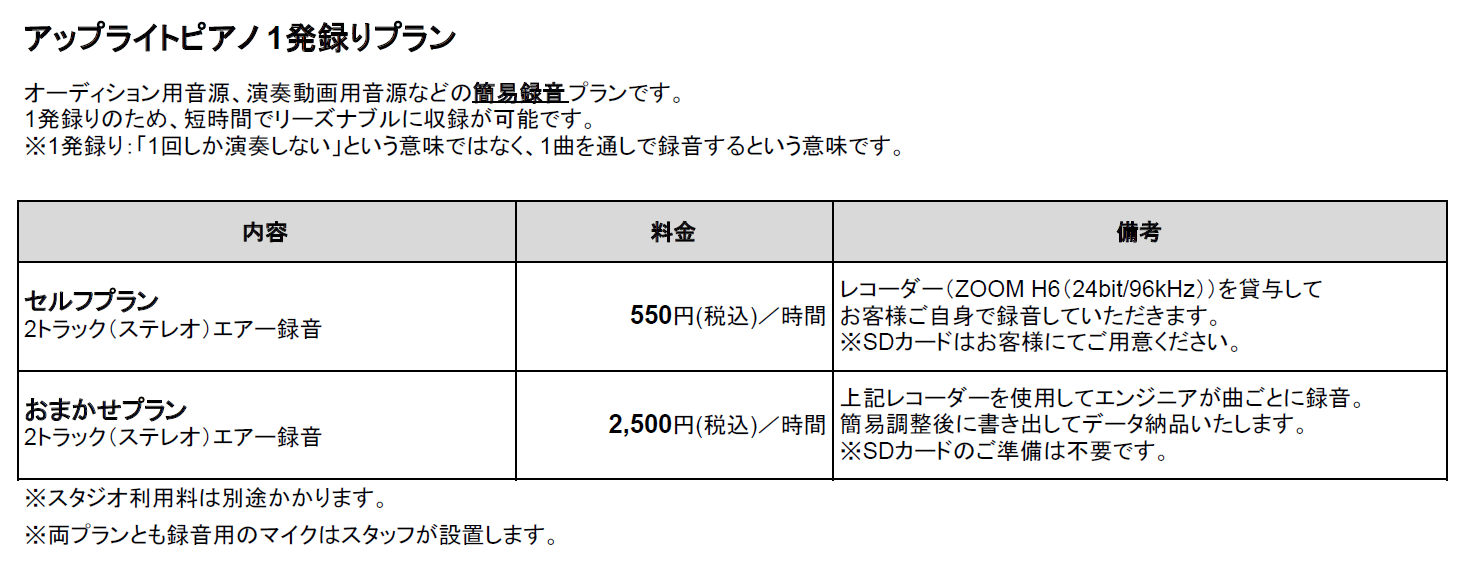 通常のスタジオ利用料金にプラスして、ワンランク上の録音体験はいかがですか?